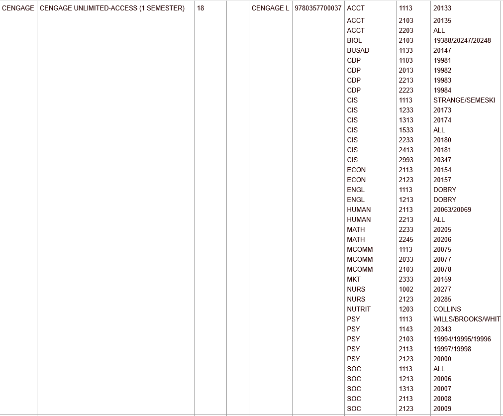 > Courses listed here are all on Cengage Unlimited. If your course is not