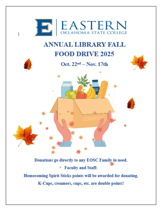 Please bring non-perishable food items to the library or place them in the donation boxes around campus!