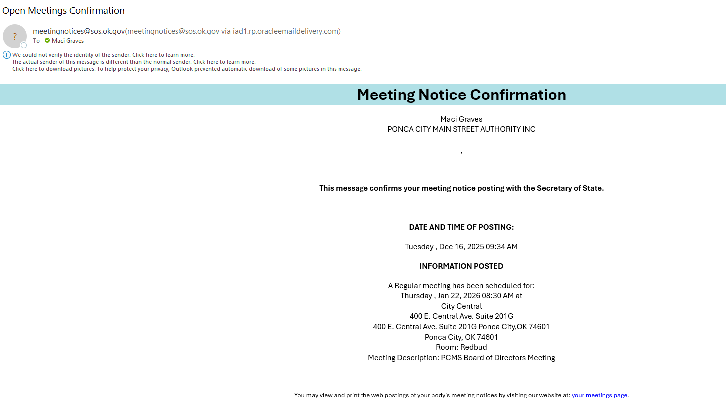 On Tue, Dec 16, 2025 at 9:43 AM Maci Graves <maci at poncacitymainstreet.com>